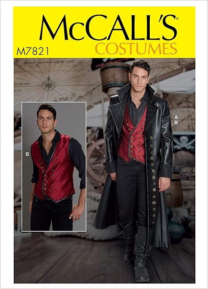 Amazon Com Mccall S Patterns Mcc 7821 Mccall S M7821 Mww Sewing Pattern Men S Wide Lapel Long Leather Coat Laced Back Vest Costume Size 38 44 Arts Crafts Sewing